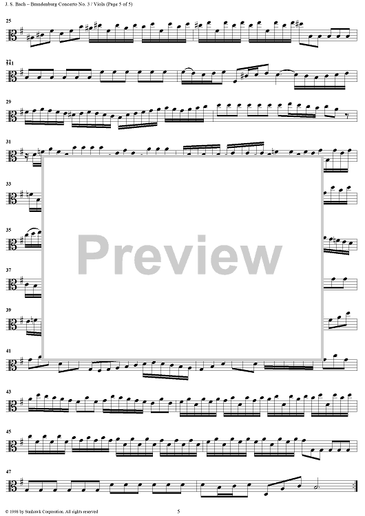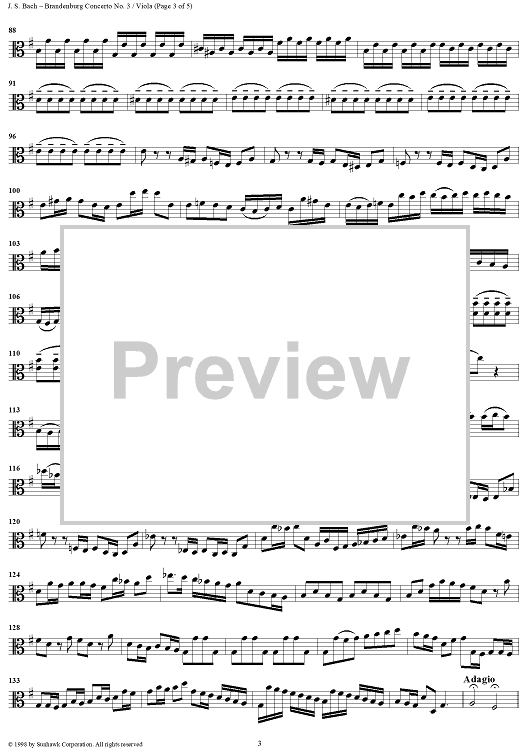 "Brandenburg Concerto No. 3 in G Major - Viola" Sheet Music by Johann Sebastian Bach