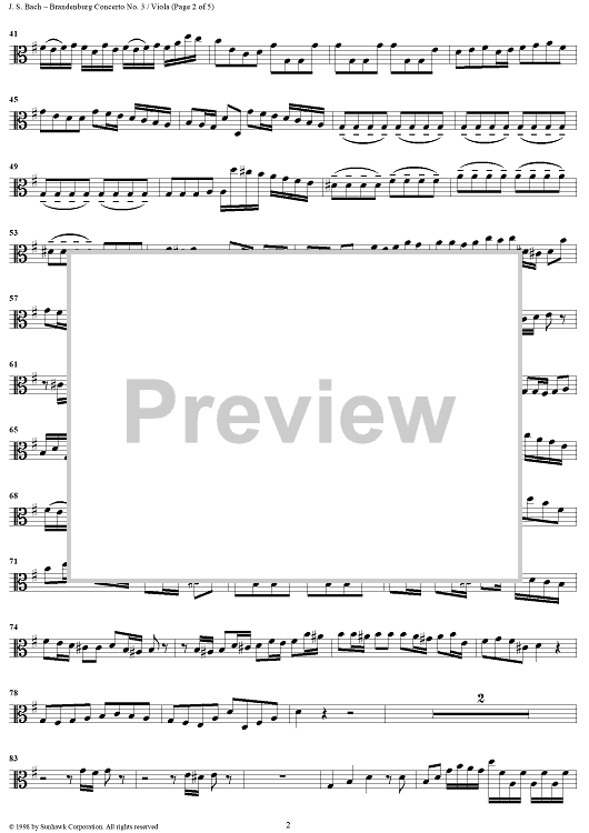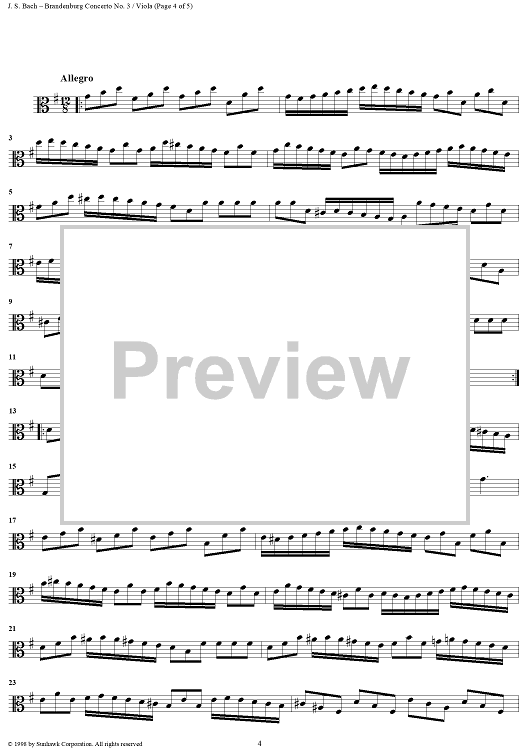Digital Sheet Music for Brandenburg Concerto No. 3 in G Major - Viola by Michael William Watson, Johann Sebastian Bach scored for String Quartet; id:96025