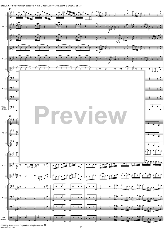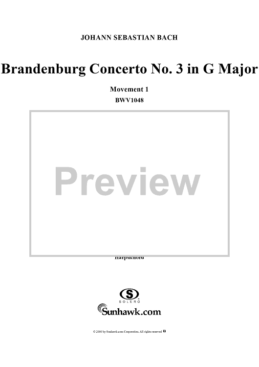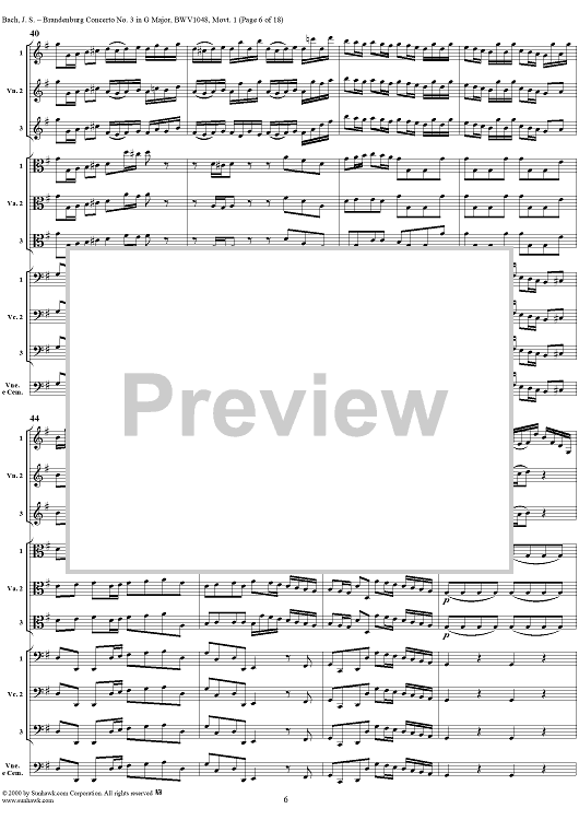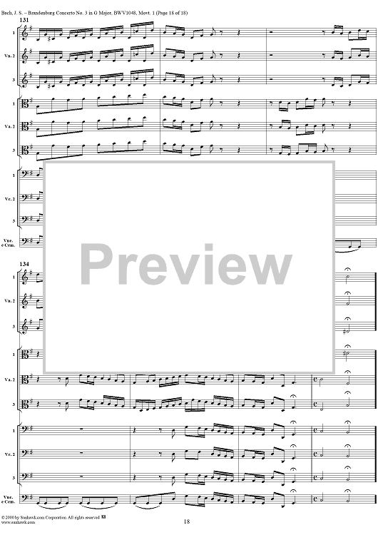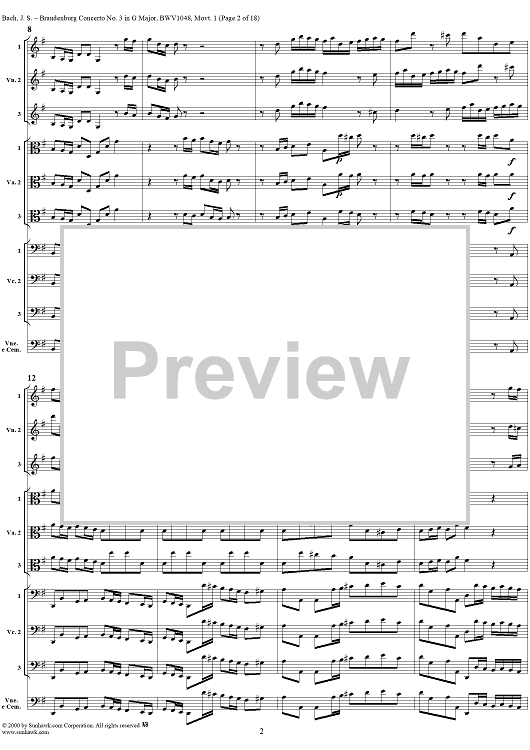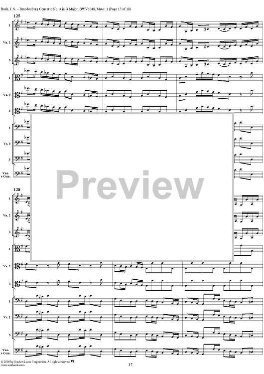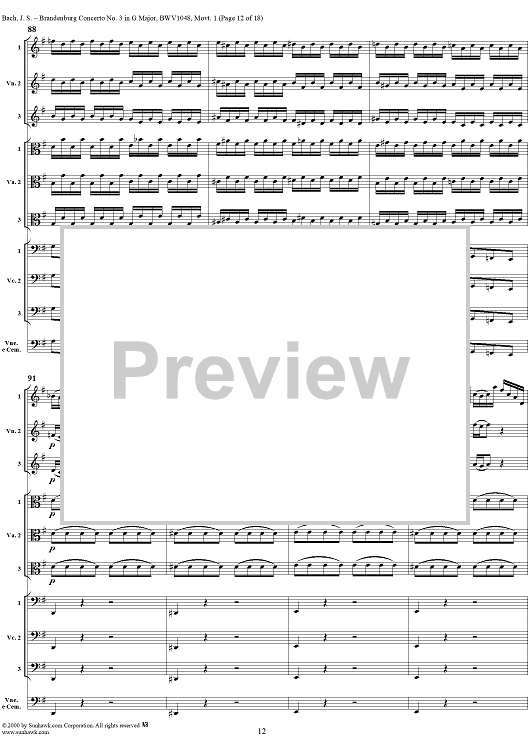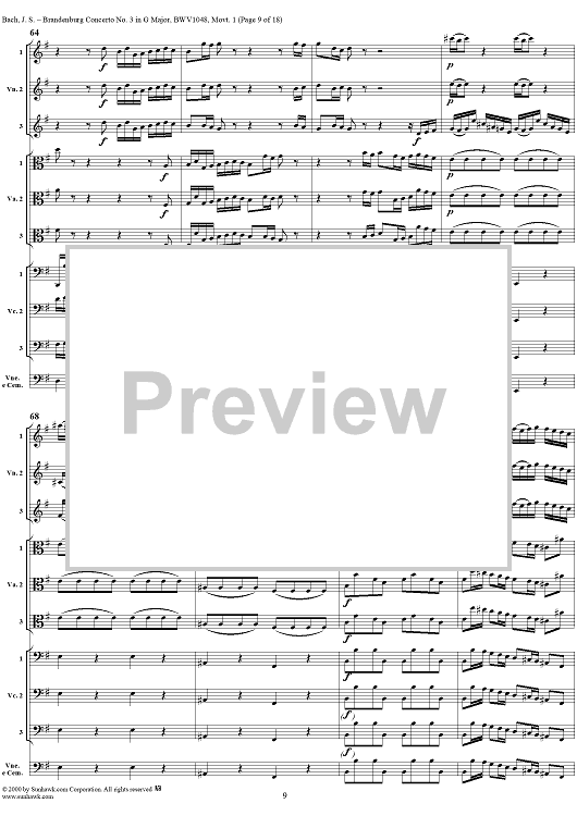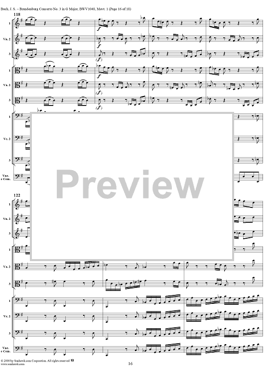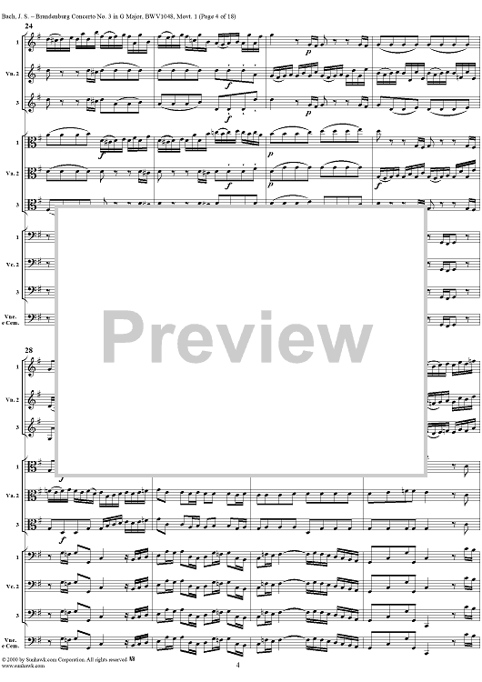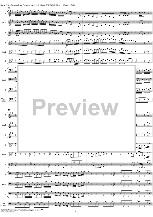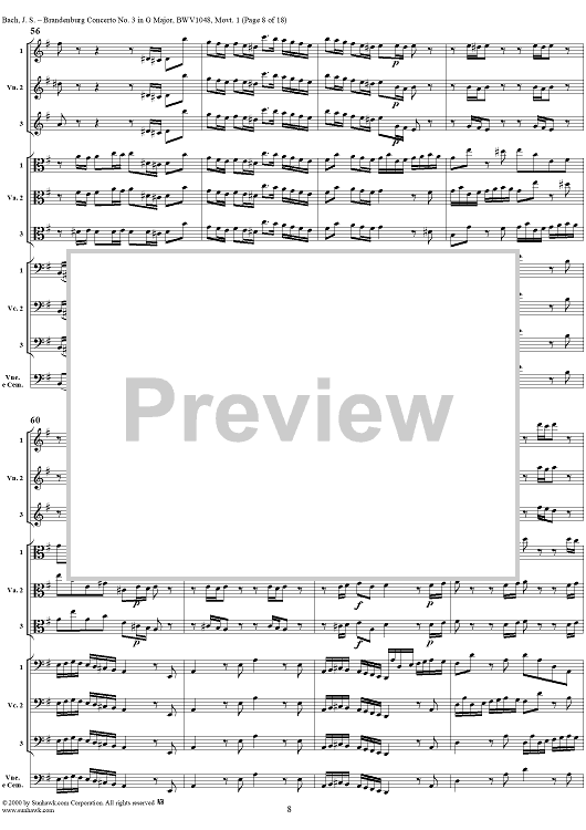 Digital Sheet Music for Brandenburg Concerto No. 3: Movement 1 - Score by Johann Sebastian Bach scored for Chamber Orchestra; id:236462