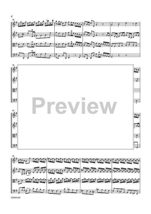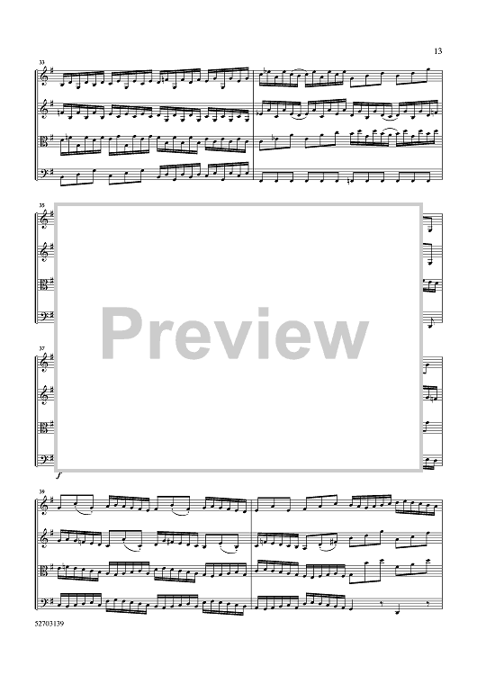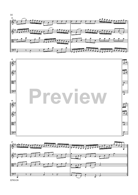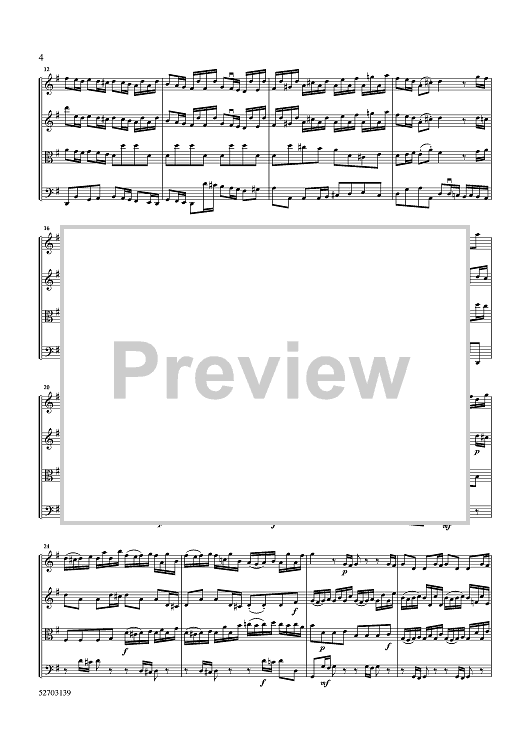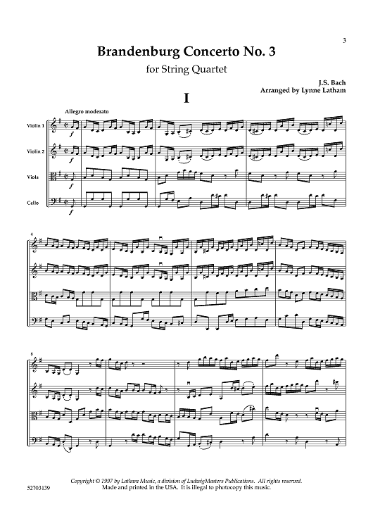Digital Sheet Music for Brandenburg Concerto No. 3 - Score by Johann Sebastian Bach, Lynne Latham scored for String Quartet; id:461163