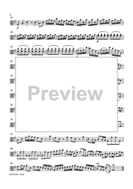 Digital Sheet Music for Brandenburg Concerto No. 3 - Viola by Johann Sebastian Bach, Lynne Latham scored for String Quartet; id:461166
