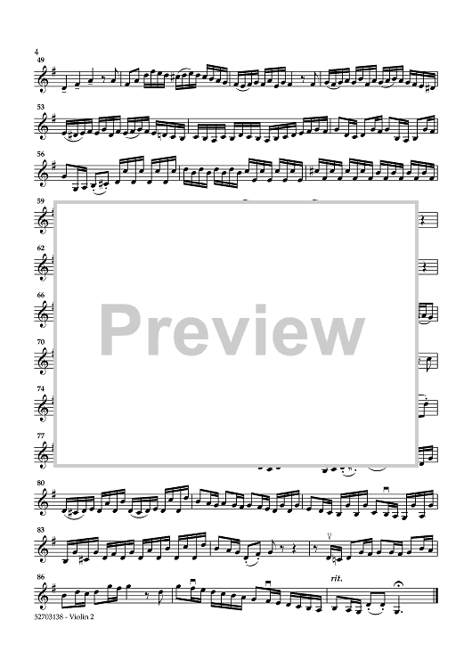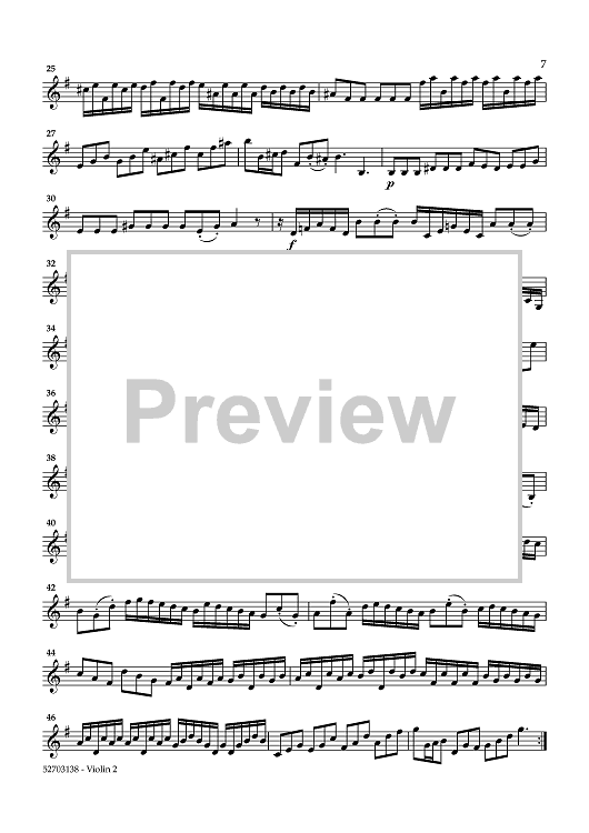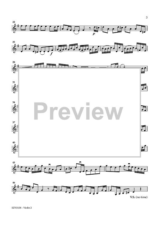 Digital Sheet Music for Brandenburg Concerto No. 3 - Violin 2 by Johann Sebastian Bach, Lynne Latham scored for String Quartet; id:461165