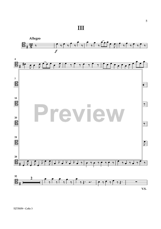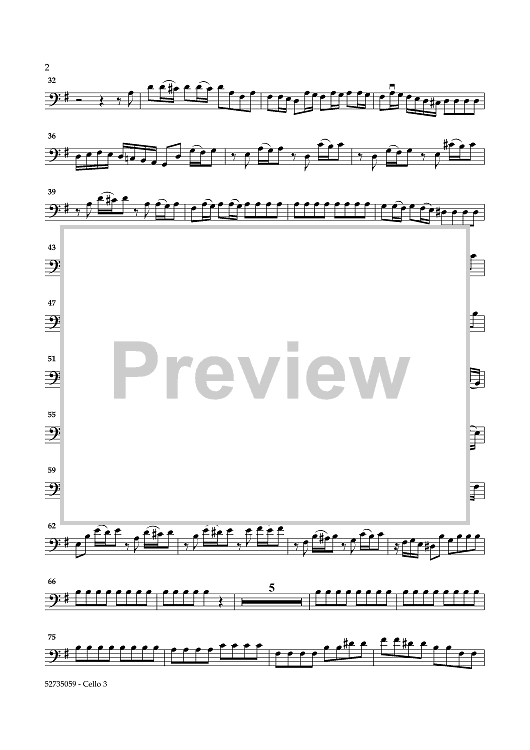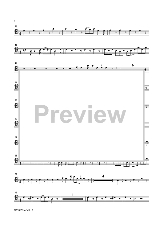 Digital Sheet Music for Brandenburg Concerto No. 6 - for Cello Sextet - Cello 3 by , Johann Sebastian Bach, Lynne Latham scored for Cello Sextet; id:462845