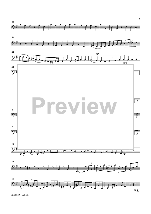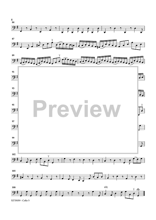 "Brandenburg Concerto No. 6 - for Cello Sextet - Cello 5" Sheet Music by Johann Sebastian Bach