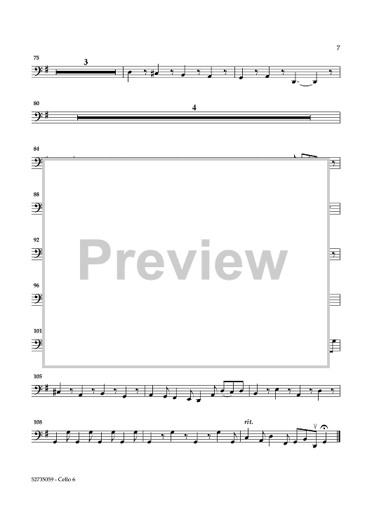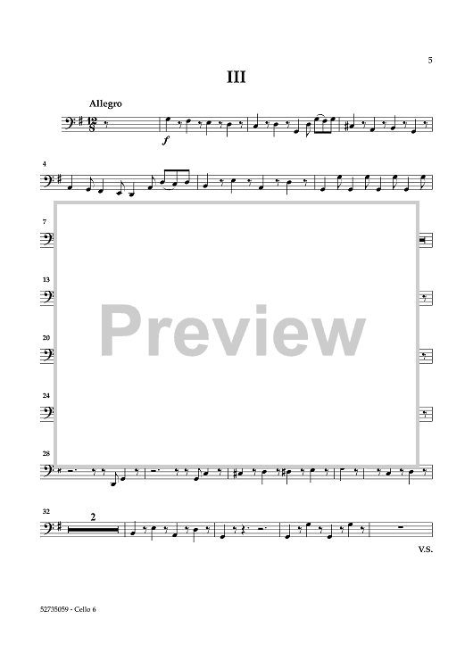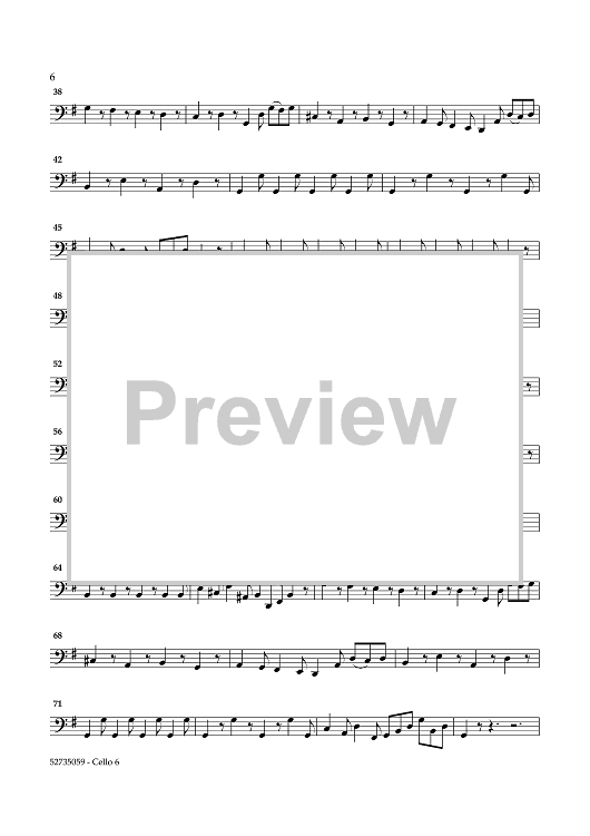 Digital Sheet Music for Brandenburg Concerto No. 6 - for Cello Sextet - Cello 6 by , Johann Sebastian Bach, Lynne Latham scored for Cello Sextet; id:462848