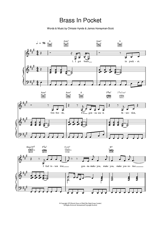 Digital Sheet Music for Brass In Pocket by The Pretenders scored for Piano/Vocal/Chords; id:378861
