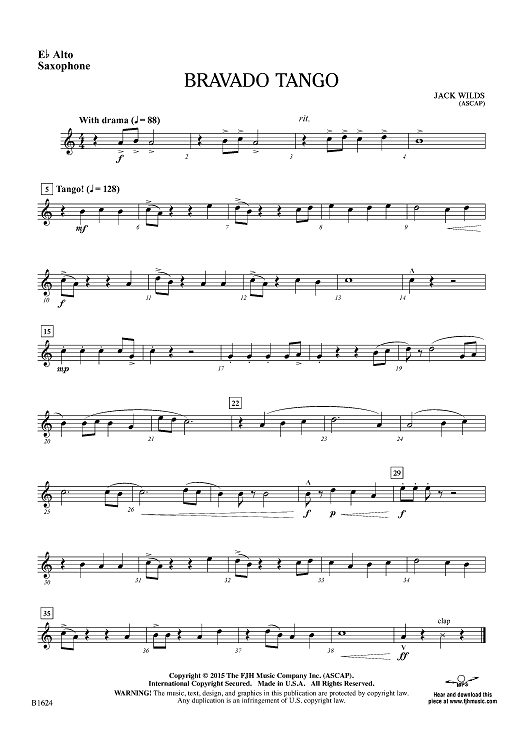 "Bravado Tango - Eb Alto Sax" Sheet Music by Jack Wilds