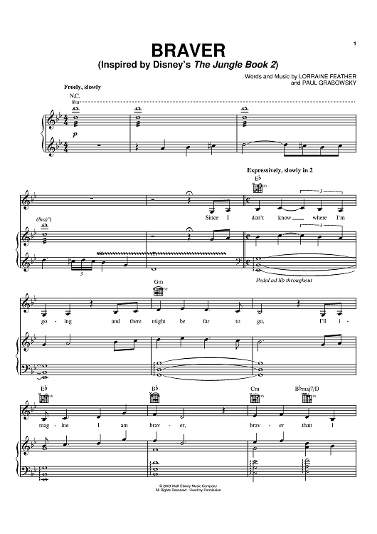 Digital Sheet Music for Braver by Lorraine Feather, Paul Grabowsky scored for Piano/Vocal/Chords; id:370870