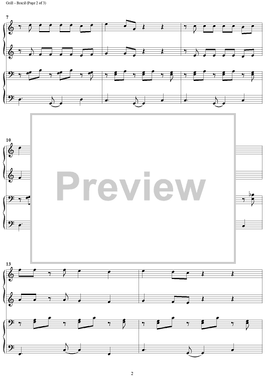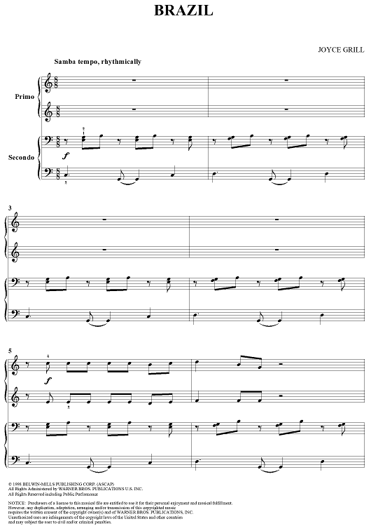Digital Sheet Music for Brazil by Joyce Grill scored for 1 Piano, 4 Hands; id:287313