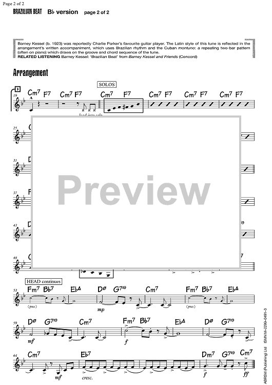 "Brazilian Beat - Bb Instruments" Sheet Music by Barney Kessel