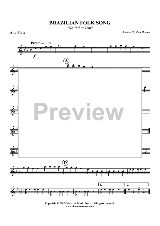 Digital Sheet Music for Brazilian Folk Song (Na Bahia Tem) - Alto Flute by , Paul Morgan, Traditional scored for Flute Ensemble; id:366640
