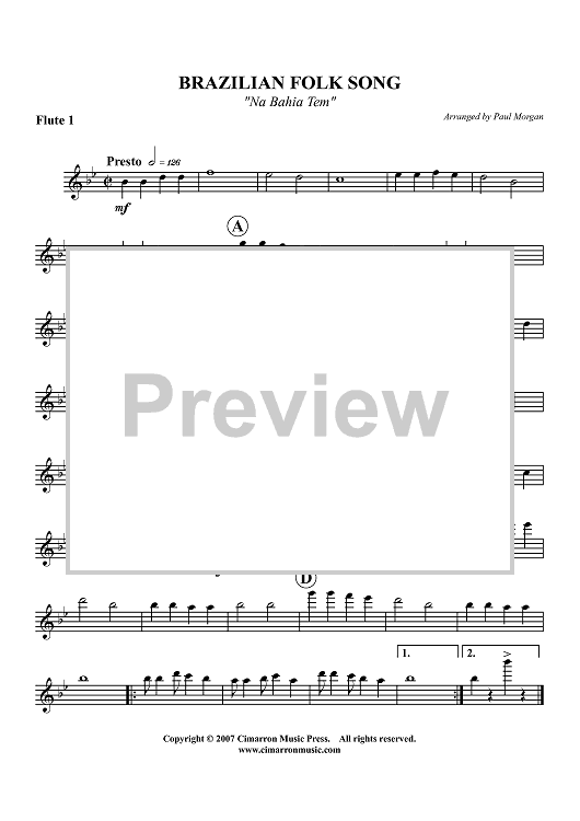 Digital Sheet Music for Brazilian Folk Song (Na Bahia Tem) - Flute 1 by , Paul Morgan, Traditional scored for Flute Ensemble; id:366641