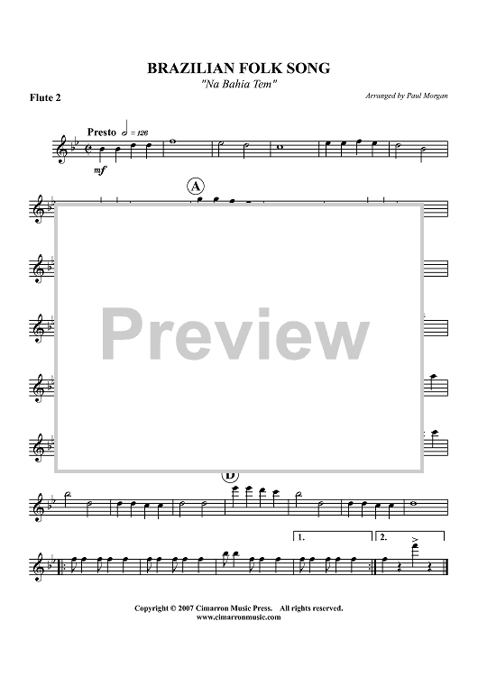 Digital Sheet Music for Brazilian Folk Song (Na Bahia Tem) - Flute 2 by , Paul Morgan, Traditional scored for Flute Ensemble; id:366642