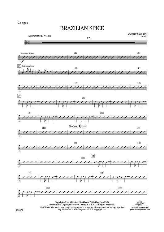 "Brazilian Spice - Congas" Sheet Music by Cathy Morris