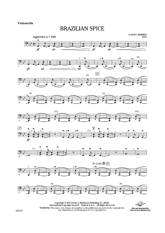 "Brazilian Spice - Violoncello" Sheet Music by Cathy Morris