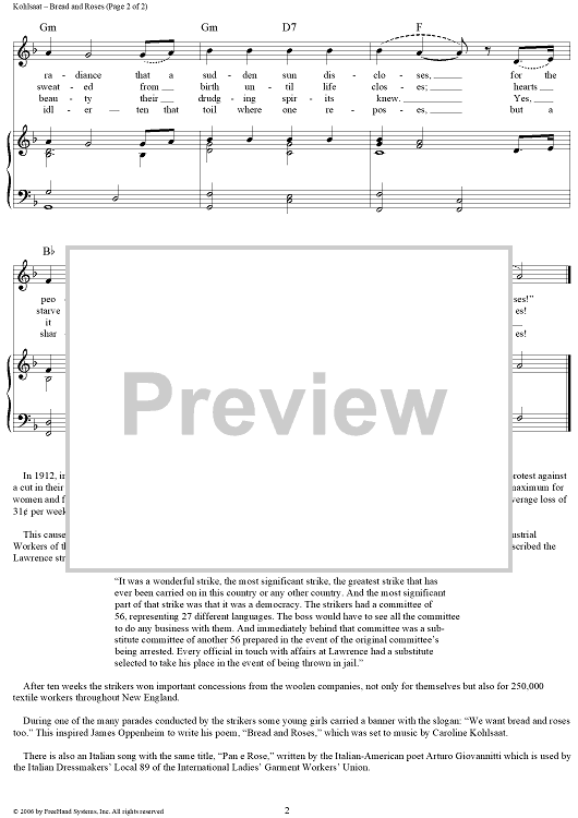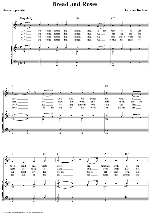 Digital Sheet Music for Bread and Roses by James Oppenheim, Caroline Kohlsaat scored for Piano/Vocal/Chords; id:355116