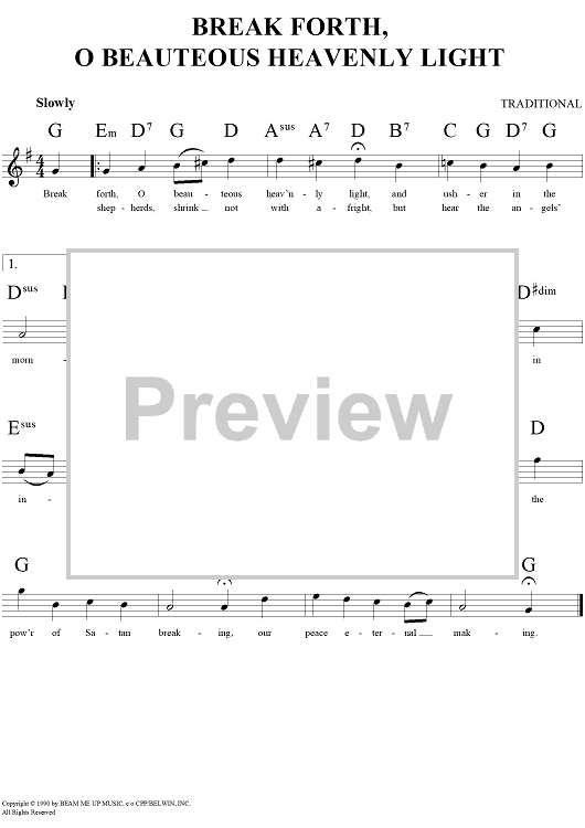 Digital Sheet Music for Break Forth, O Beauteous Heavenly Light by Traditional scored for Lead Sheet; id:260148