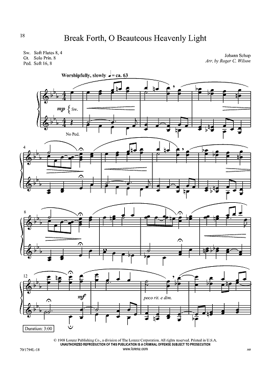 Digital Sheet Music for Break Forth, O Beauteous Heavenly Light by Johann Schop, Roger C. Wilson scored for Organ Solo; id:437761