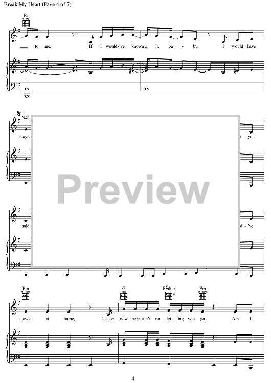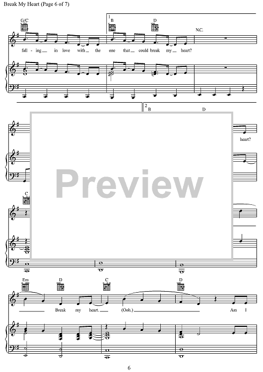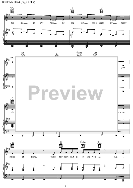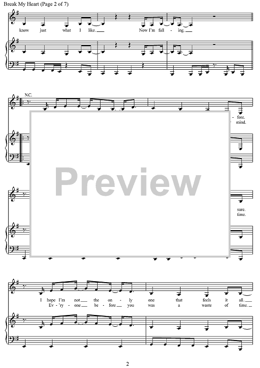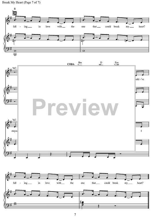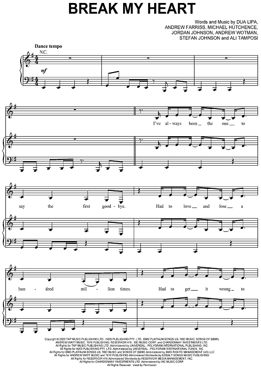 Digital Sheet Music for Break My Heart by Andrew Farriss, Michael Hutchence, Jordan Johnson, Ali Tamposi, Stefan Johnson, Andrew Wotman, Dua Lipa scored for Piano/Vocal/Chords; id:468410
