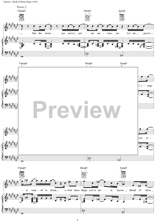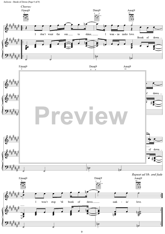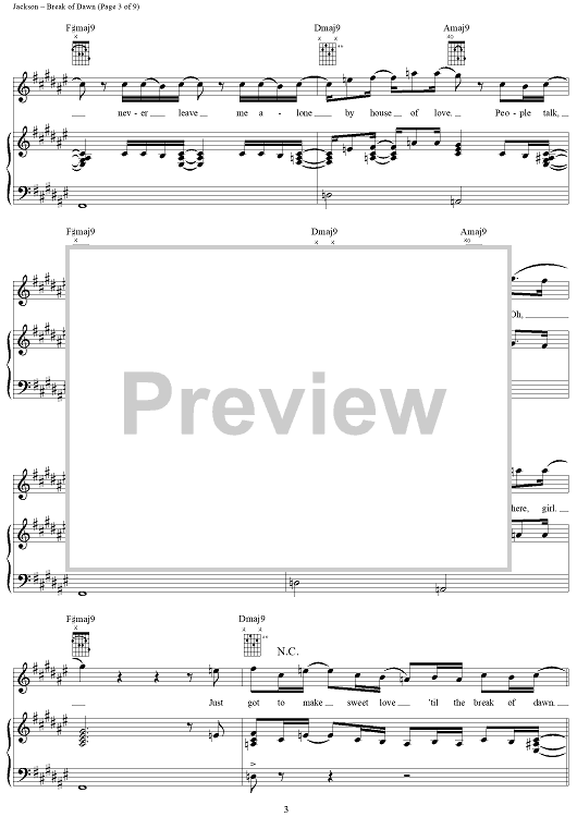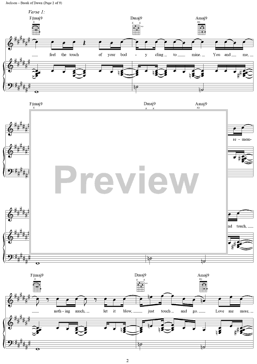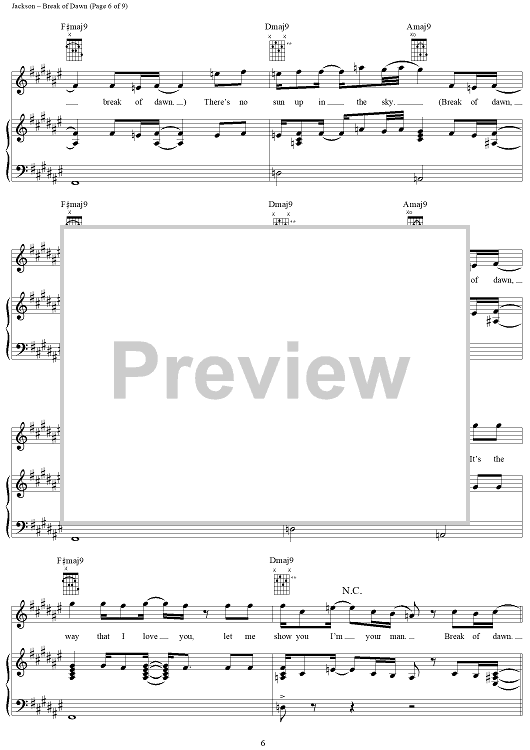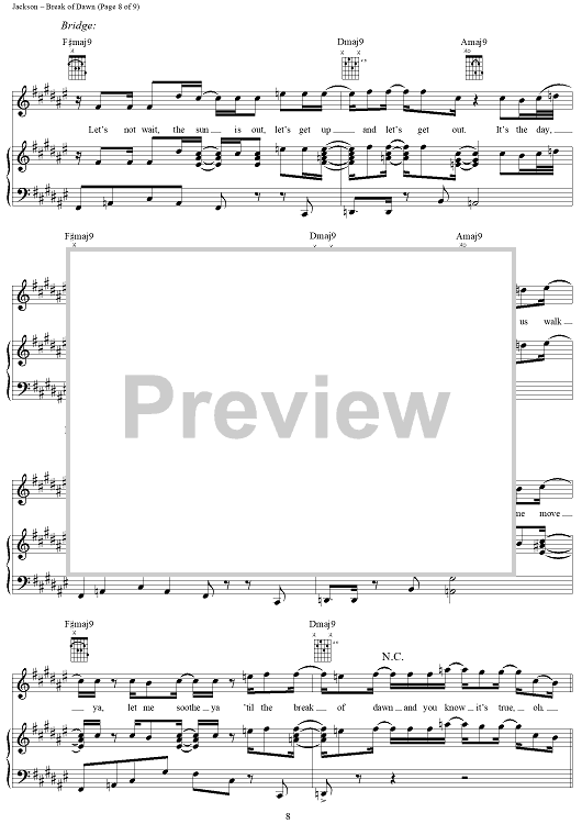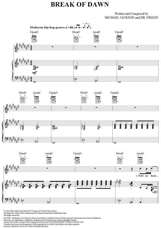 Digital Sheet Music for Break of Dawn by Michael Jackson, Dr. Freeze scored for Piano/Vocal/Chords; id:288921