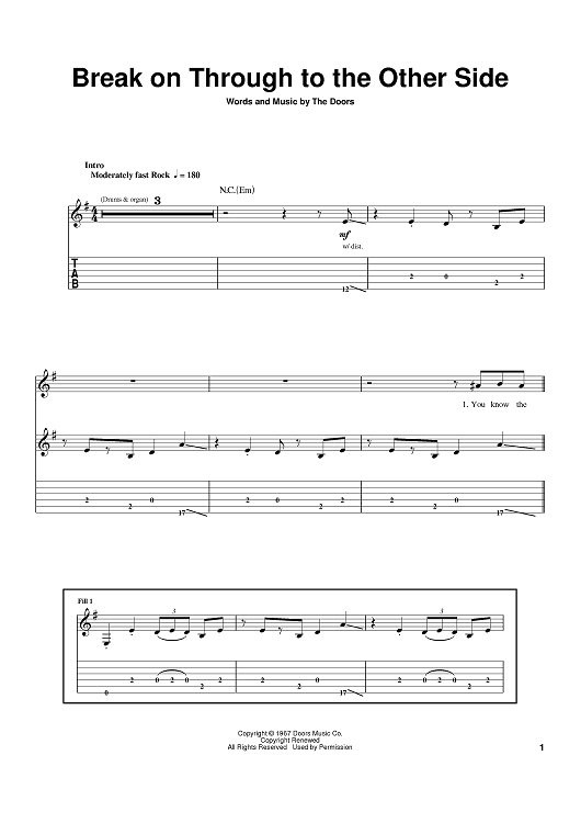 Digital Sheet Music for Break On Through To The Other Side by The Doors scored for Guitar Tab; id:402829