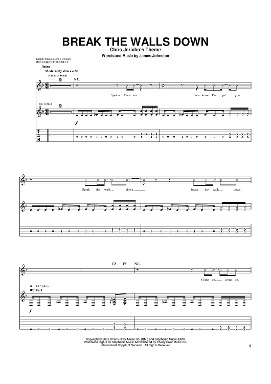 Digital Sheet Music for Break The Walls Down by Sevendust, James Johnston scored for Guitar Tab; id:371247