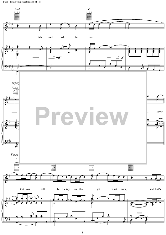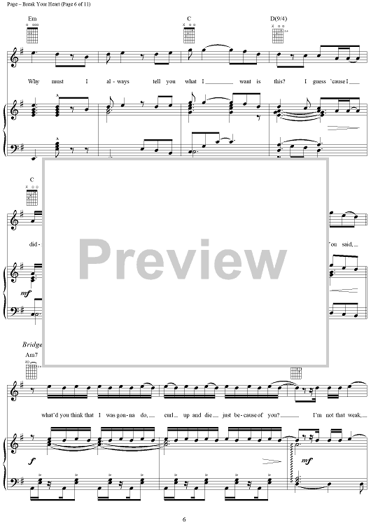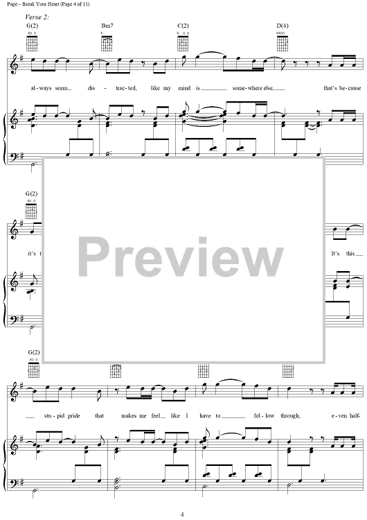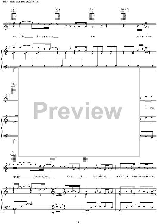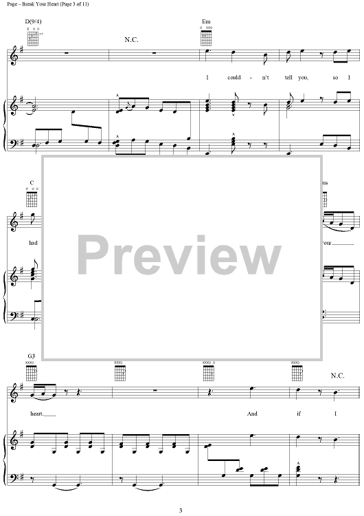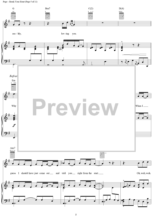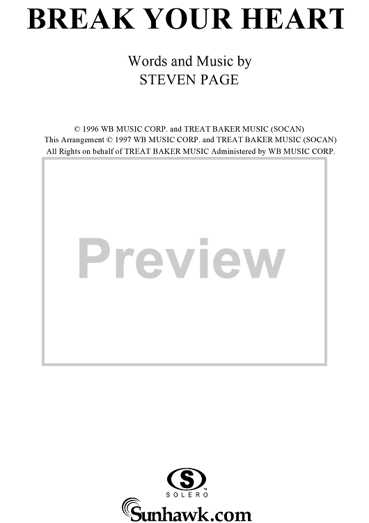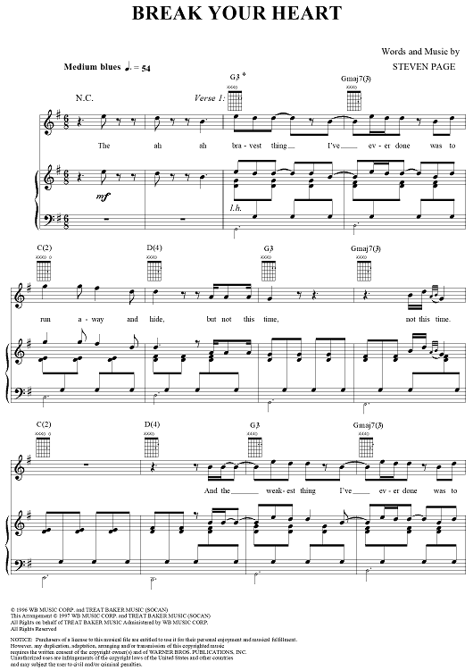 Digital Sheet Music for Break Your Heart by Steven Page, Barenaked Ladies scored for Piano/Vocal/Chords; id:254063