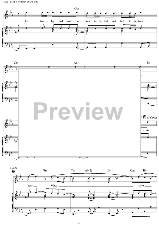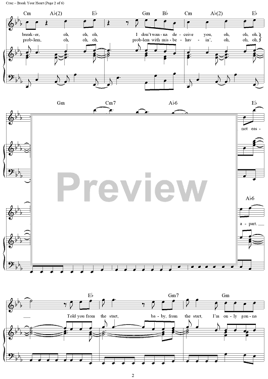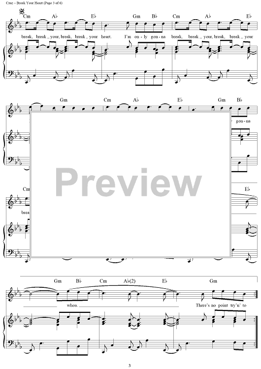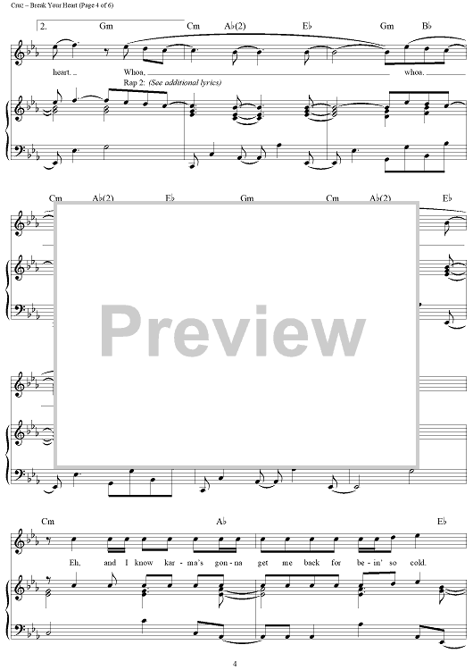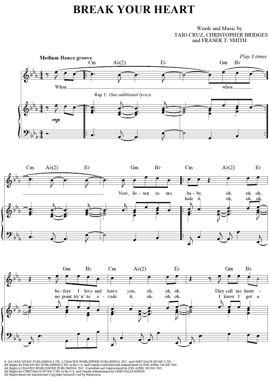 Digital Sheet Music for Break Your Heart by Ludacris, Taio Cruz, Fraser T. Smith scored for Piano/Vocal/Chords; id:411411