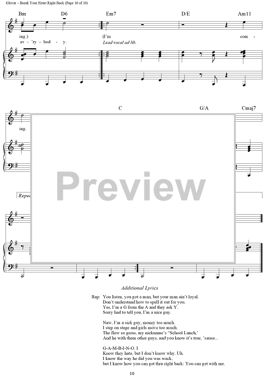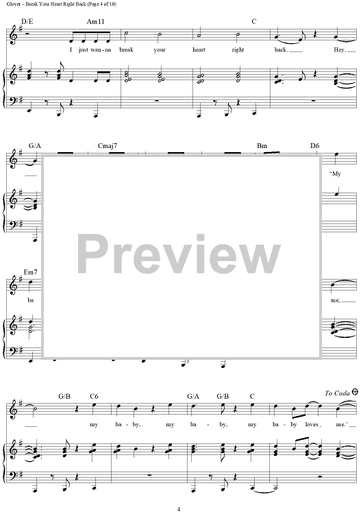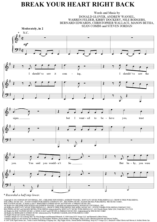 Digital Sheet Music for Break Your Heart Right Back by Nile Rodgers, Bernard Edwards, Mason Betha, Steven Jordan, The Notorious B.I.G., Ariana Grande, Warren Felder, Andrew Wansel, Donald Glover, Kirby Dockery scored for Piano/Vocal/Chords; id:457415
