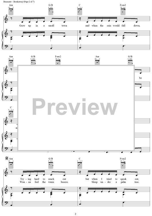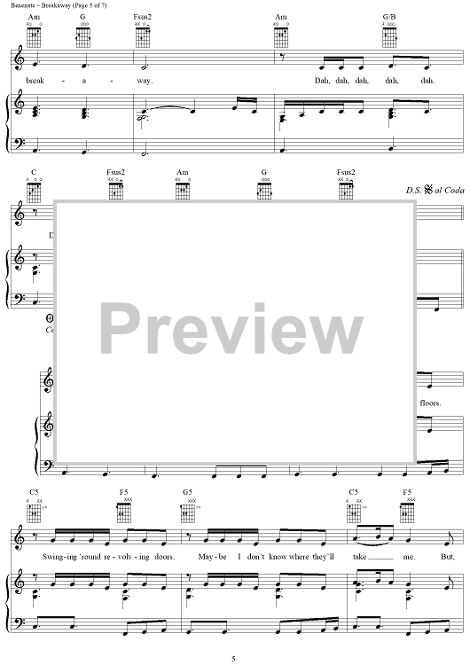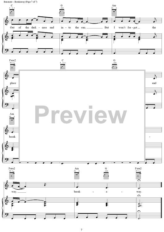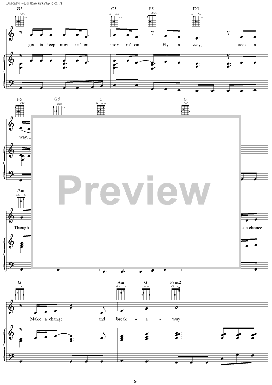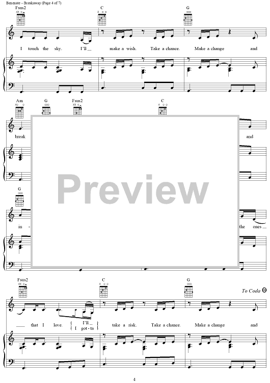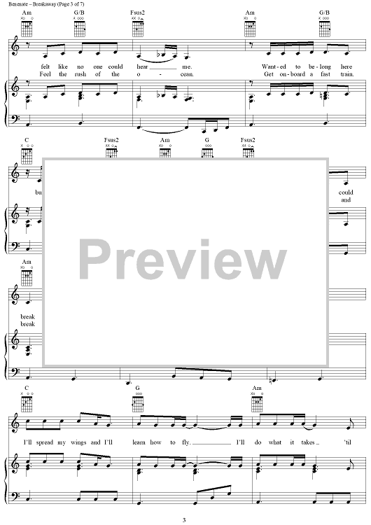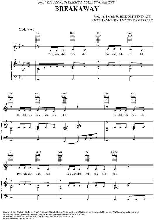 Digital Sheet Music for Breakaway by Bridget Benenate, Matthew Gerrard, Avril Lavigne, Kelly Clarkson scored for Piano/Vocal/Chords; id:367234