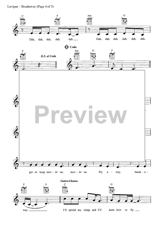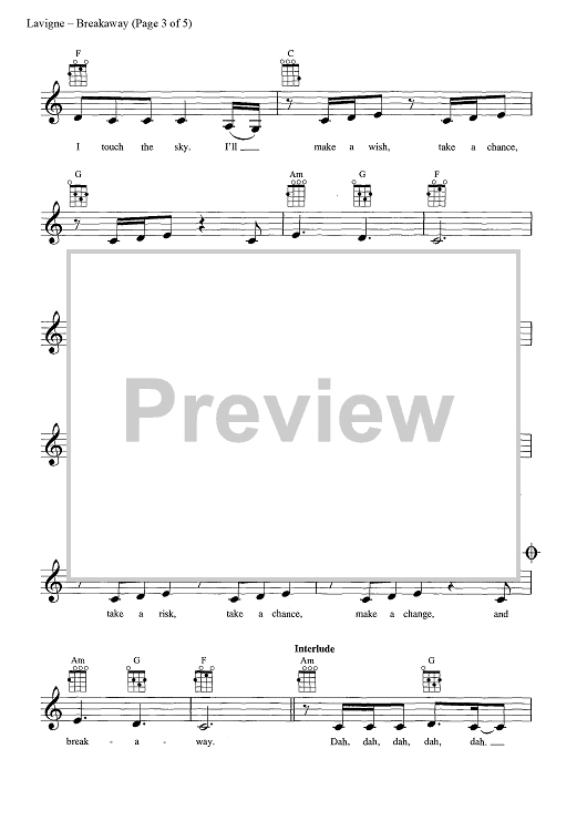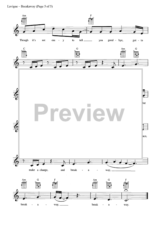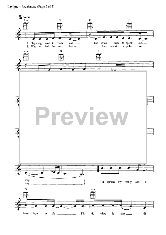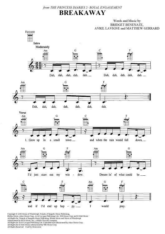Digital Sheet Music for Breakaway by Bridget Benenate, Matthew Gerrard, Avril Lavigne, Kelly Clarkson scored for Ukulele/Vocal; id:444716
