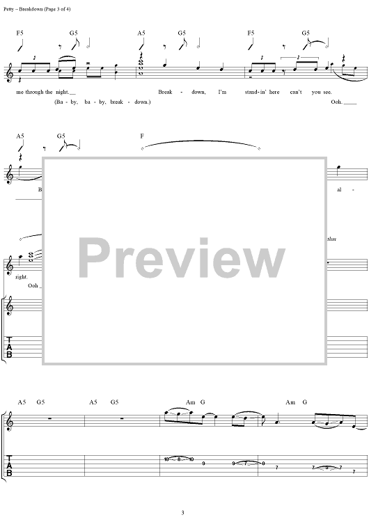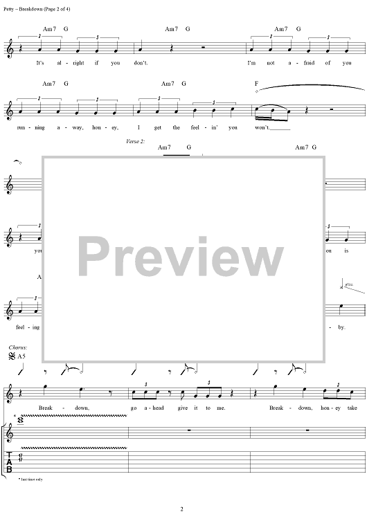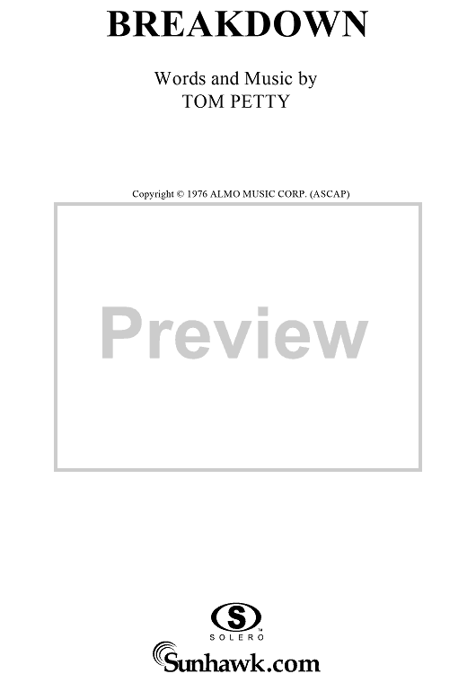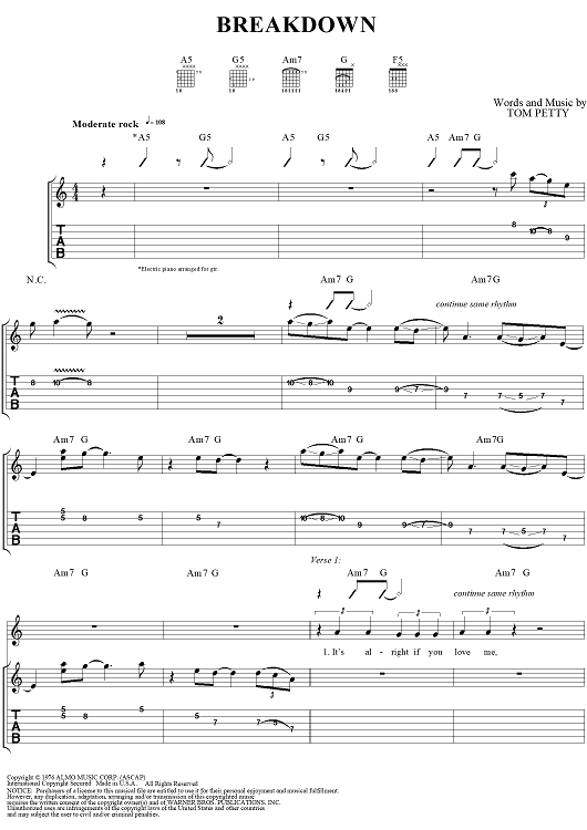 Digital Sheet Music for Breakdown by Tom Petty scored for Guitar Tab/Vocal; id:112334