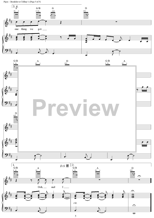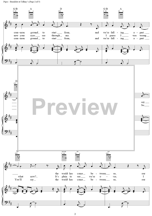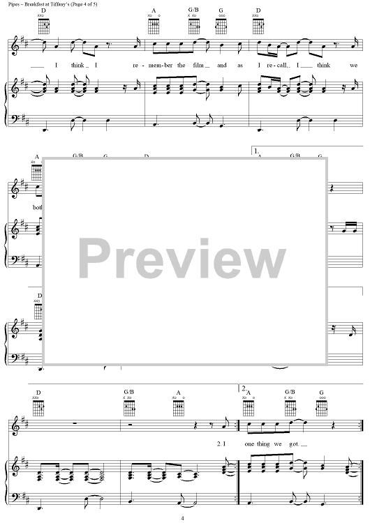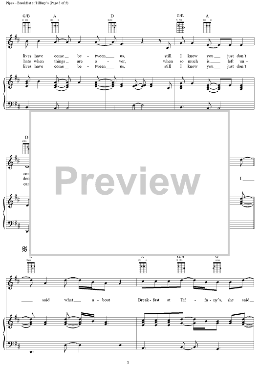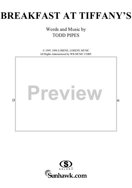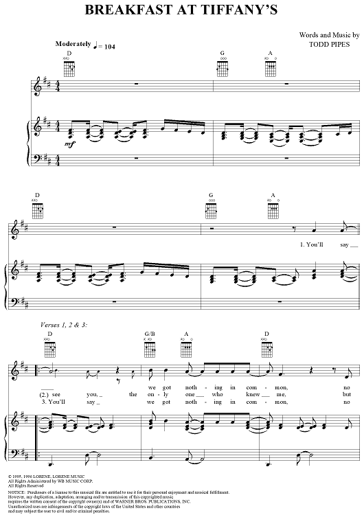 Digital Sheet Music for Breakfast at Tiffany's by Todd Pipes, Deep Blue Something scored for Piano/Vocal/Chords; id:254613