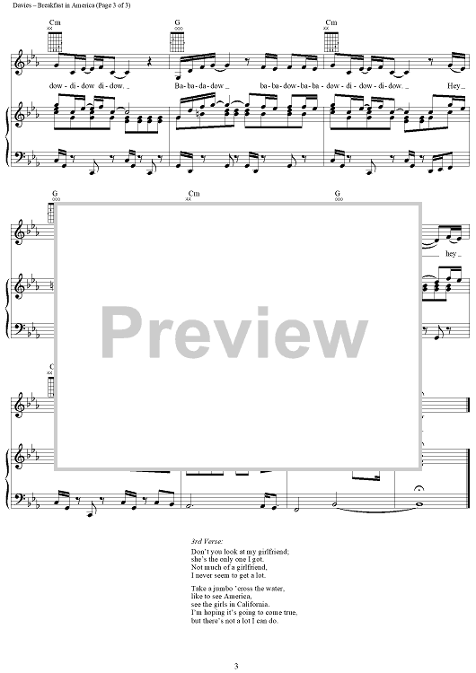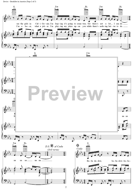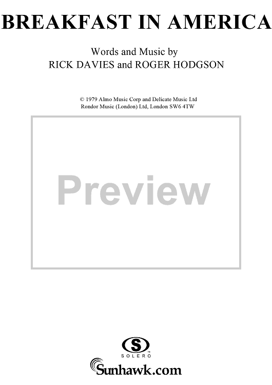 Digital Sheet Music for Breakfast in America by Rick Davies, Roger Hodgson, Supertramp scored for Piano/Vocal/Chords; id:124117