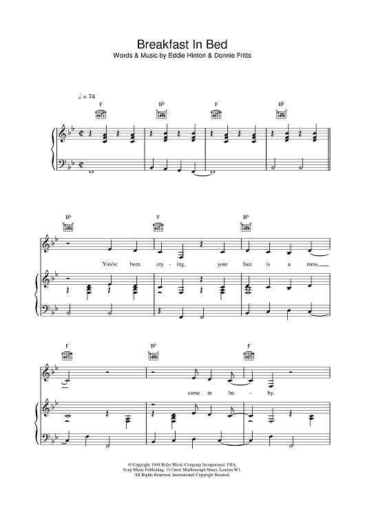 Digital Sheet Music for Breakfast In Bed by UB40 scored for Piano/Vocal/Chords; id:376250
