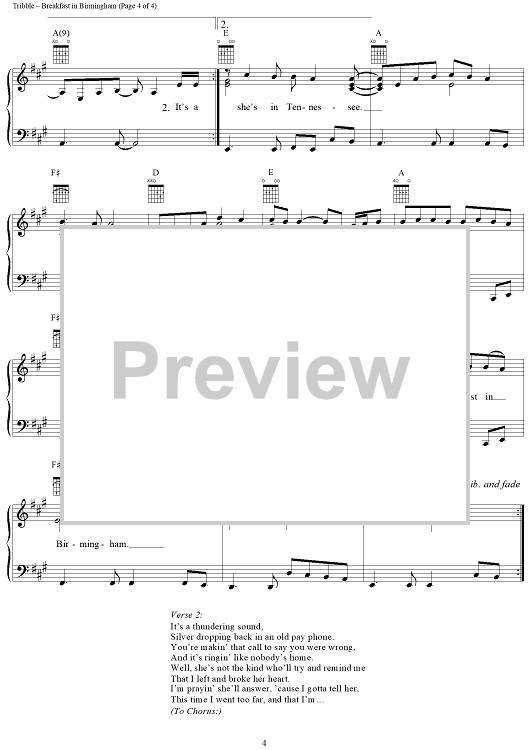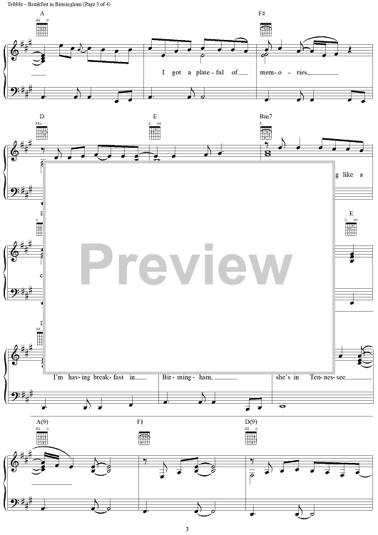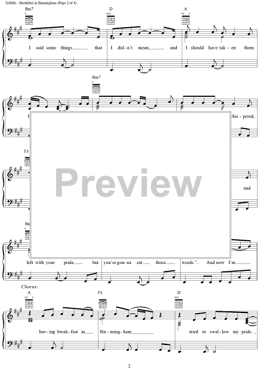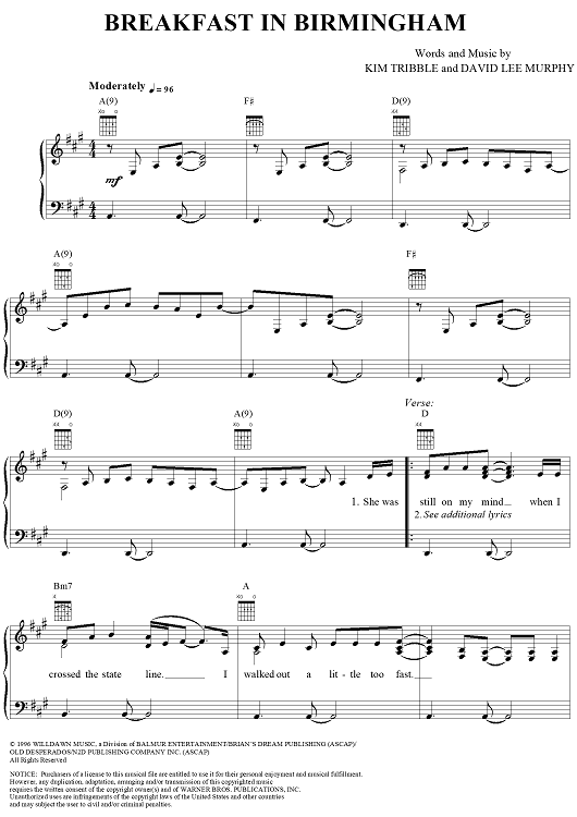 Digital Sheet Music for Breakfast In Birmingham by Kim Tribble, David Lee Murphy scored for Piano/Vocal/Chords; id:111958