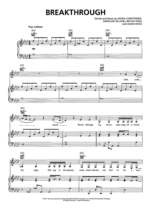 Digital Sheet Music for Breakthrough by Maria Christensen, Shridhar Solanki, Brian Todd, Adam Hicks scored for Piano/Vocal/Chords; id:438320