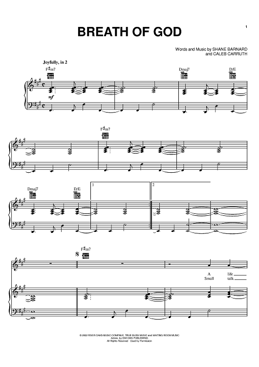 Digital Sheet Music for Breath Of God by Shane Barnard, Shane and Shane, Caleb Carruth scored for Piano/Vocal/Chords; id:381586