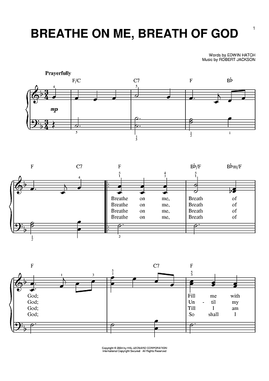 "Breathe On Me, Breath Of God" Sheet Music by Edwin Hatch
