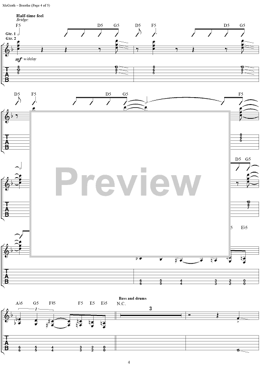 Digital Sheet Music for Breathe by Mark McGrath, Stan Frazier, Rodney Sheppard, Craig Bullock, Murphy Karges, Sugar Ray scored for Guitar Tab/Vocal; id:241786