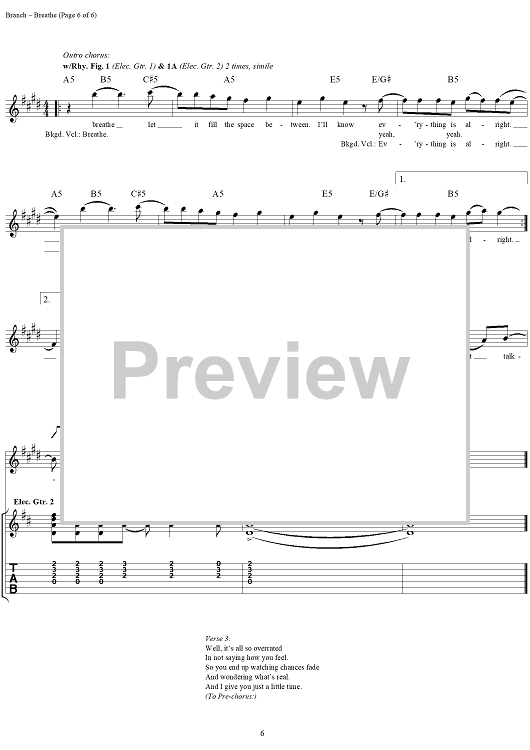 "Breathe" Sheet Music by Michelle Branch