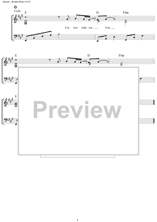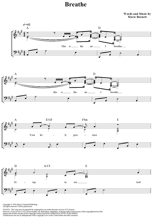 Digital Sheet Music for Breathe by Marie Barnett scored for Piano/Vocal/Chords; id:309148