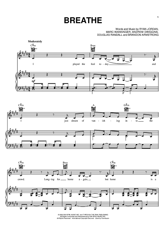 Digital Sheet Music for Breathe by Melissa Etheridge, Andrew Dwiggins, Ryan Jordan, Marc Wanninger scored for Piano/Vocal/Chords; id:375051
