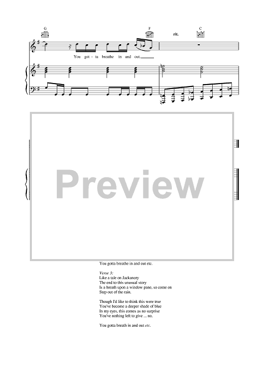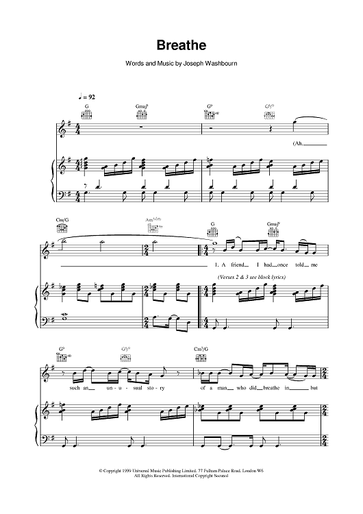 Digital Sheet Music for Breathe by Toploader, Joseph Washbourn scored for Piano/Vocal/Chords; id:377134