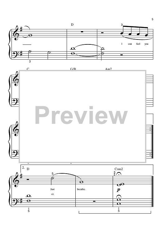 Digital Sheet Music for Breathe by Faith Hill, Stephanie Bentley, Holly Lamar scored for Big Note Piano; id:384960