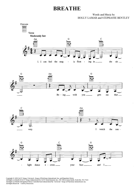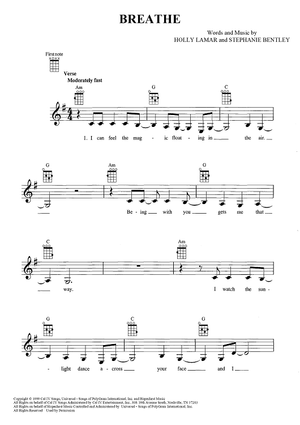 Digital Sheet Music for Breathe by Faith Hill, Stephanie Bentley, Holly Lamar scored for Ukulele/Vocal; id:444717