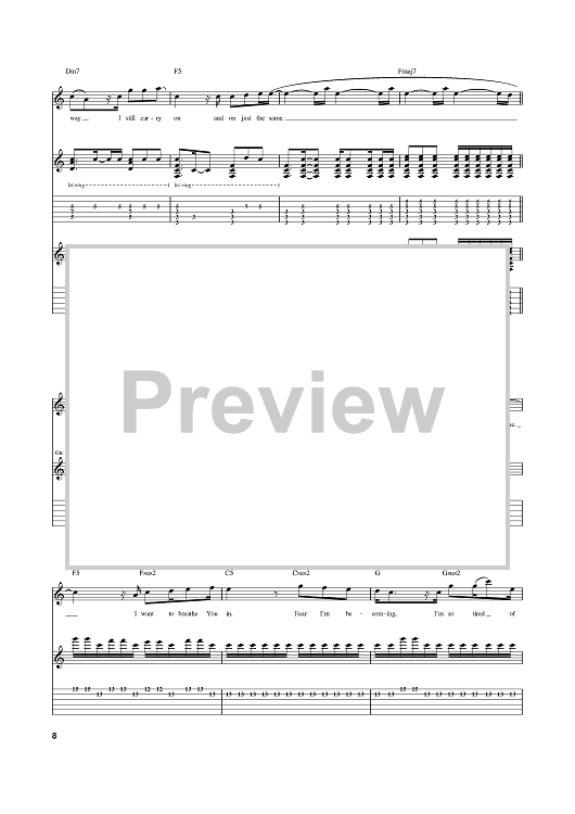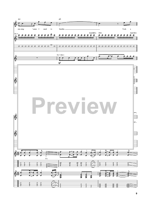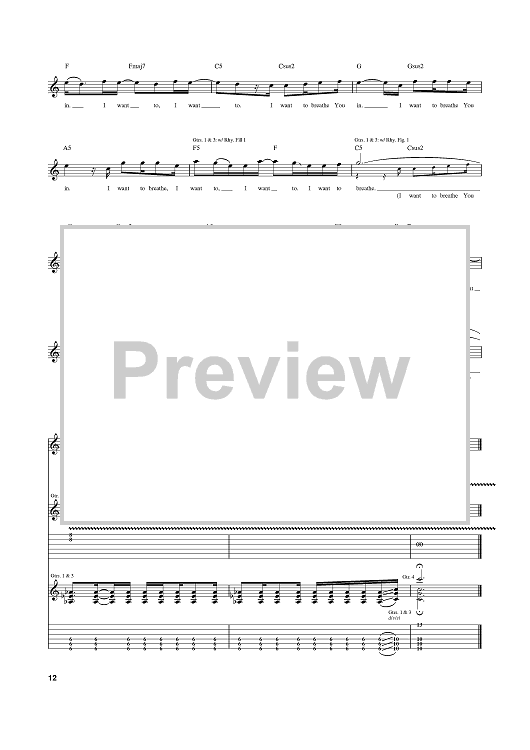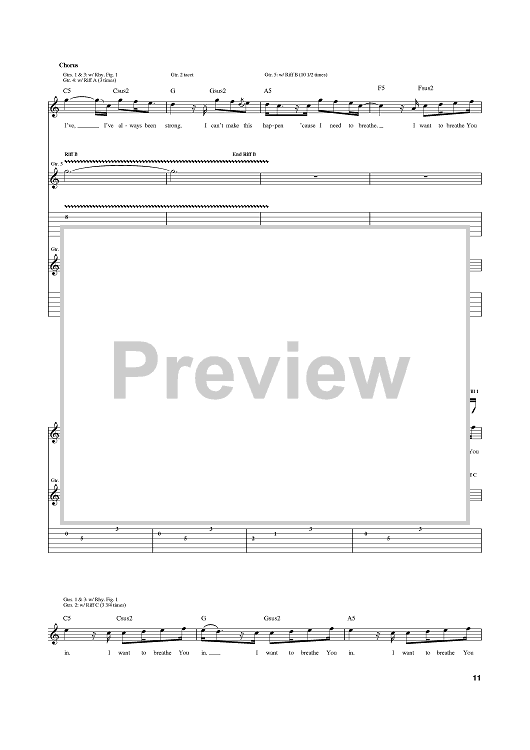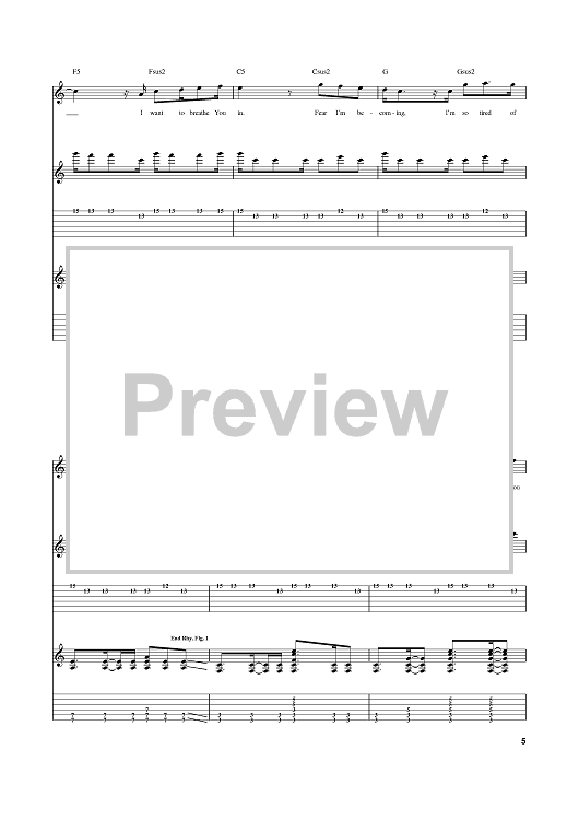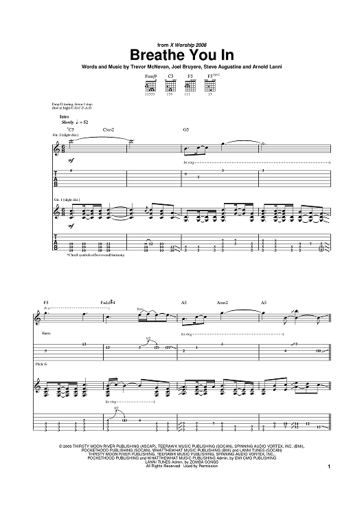 Digital Sheet Music for Breathe You In by Steve Augustine, Joel Bruyere, Arnold Lanni, Teerawk, Thousand Foot Krutch scored for Guitar Tab; id:388507