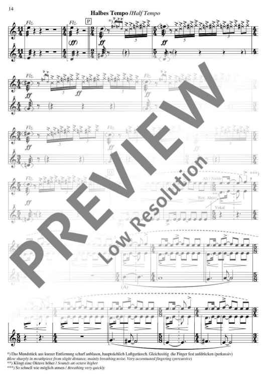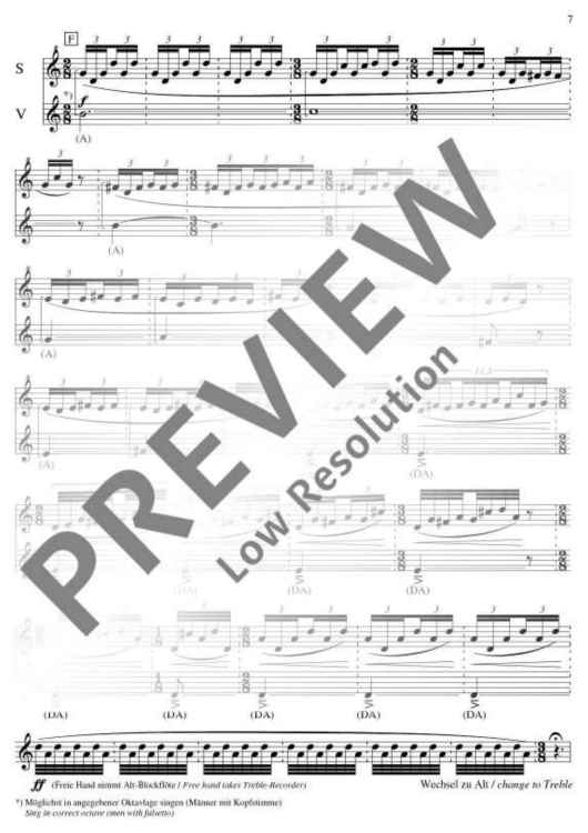 Dissatisfied with computerized sounds the composer experiments exhaustively with the various techniques of playing two recorders simultaneously and requires advanced breathing abilities and proficiency of the performer.