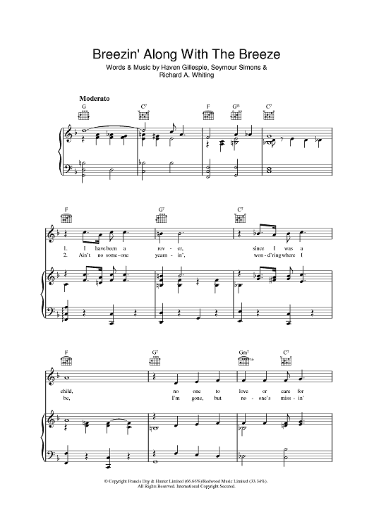 Digital Sheet Music for Breezin' Along With The Breeze by Haven Gillespie, Seymour Simons, Richard A. Whiting scored for Piano/Vocal/Chords; id:392741