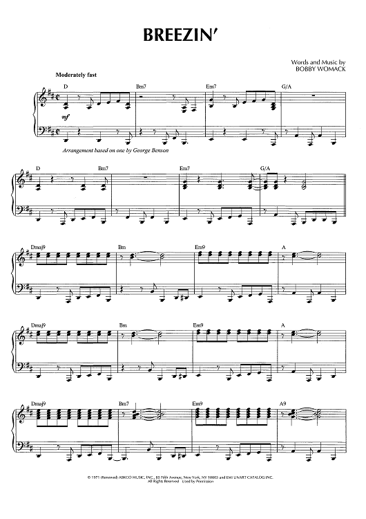 Digital Sheet Music for Breezin' by Bobby Womack, Brent Edstrom scored for Piano Solo; id:466279